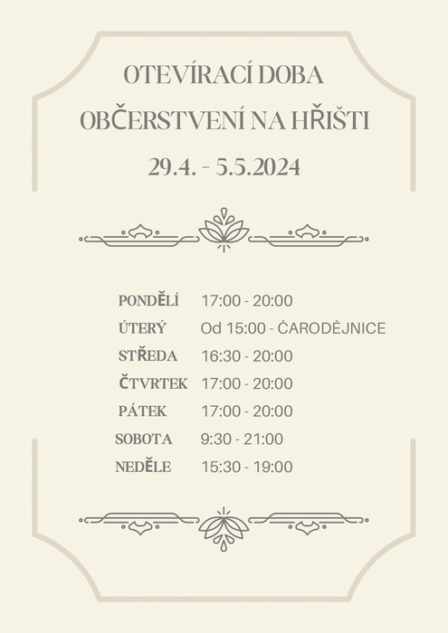 Úvod > Obec > Aktuality > Otevírací doba Občerstvení u hřiště v týdnu od 29.4. do 5.5.2024