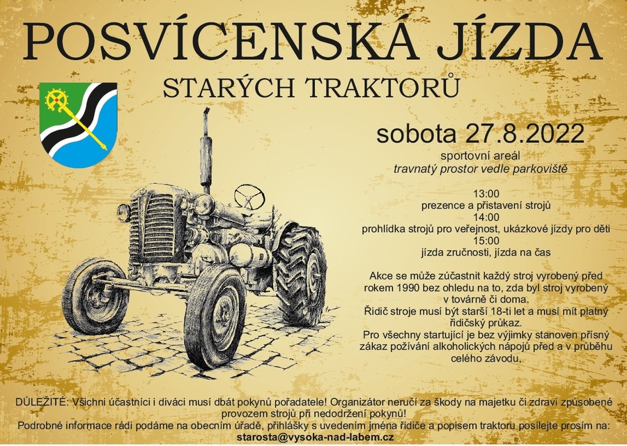 Podrobné informace rádi podáme na obecním úřadě, přihlášky s uvedením jména řidiče a popisem traktoru posílejte prosím na: