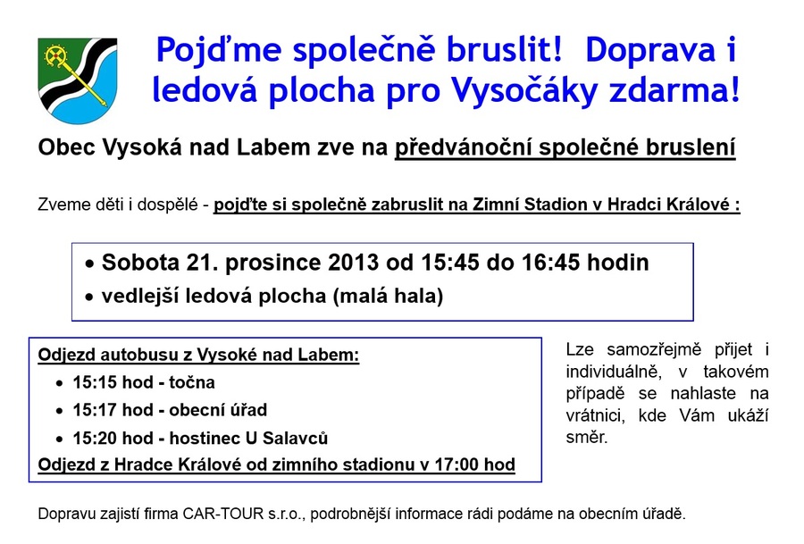 Obec Vysoká nad Labem zve na předvánoční společné bruslení!