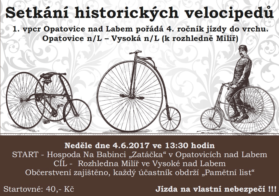 1.vpcr Opatovice nad Labem pořádá 4. ročník jízdy do vrchu: Opatovice n/L – Vysoká n/L (k rozhledně Milíř)