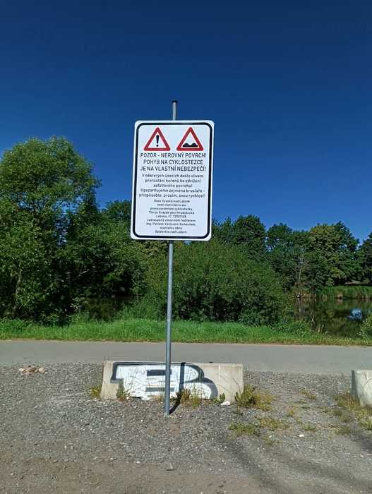 Nákladem obce Vysoká nad Labem byly alespoň u vjezdu na cyklostezku umístěny varovné cedule upozorňující na špatný stav cyklostezky.