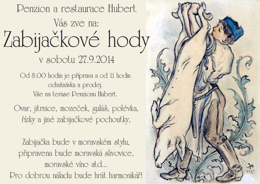Penzion a restaurace Hubert srdečně zve na ZABIJAČKOVÉ HODY, v sobotu 27.9.2014