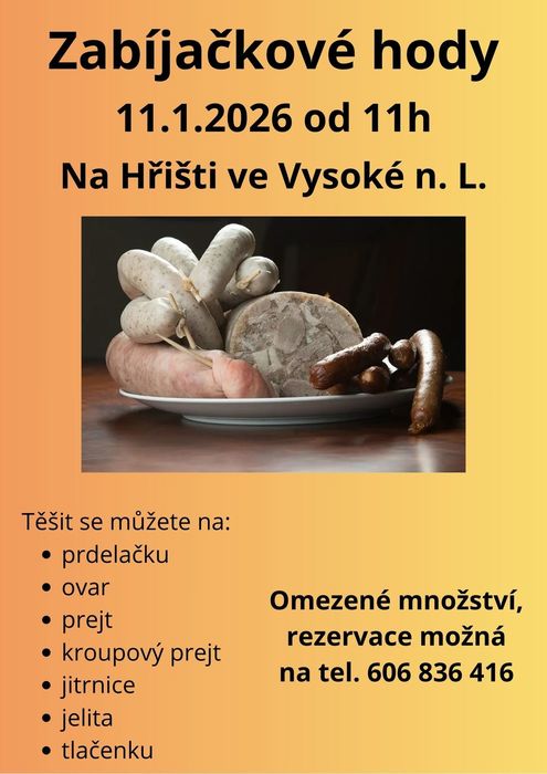 Občerstvení Na Hřišti ve Vysoké nad Labem Vás zve v neděli 11.1.2026 na zabíjačkové hody.