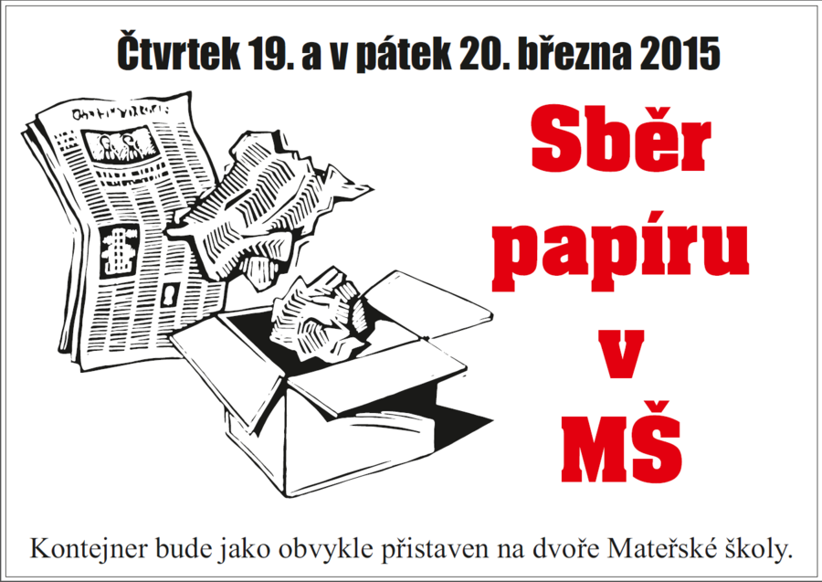 Sběr papíru v mateřské škole se uskuteční ve čtvrtek 19. a v pátek 20. března 2015.