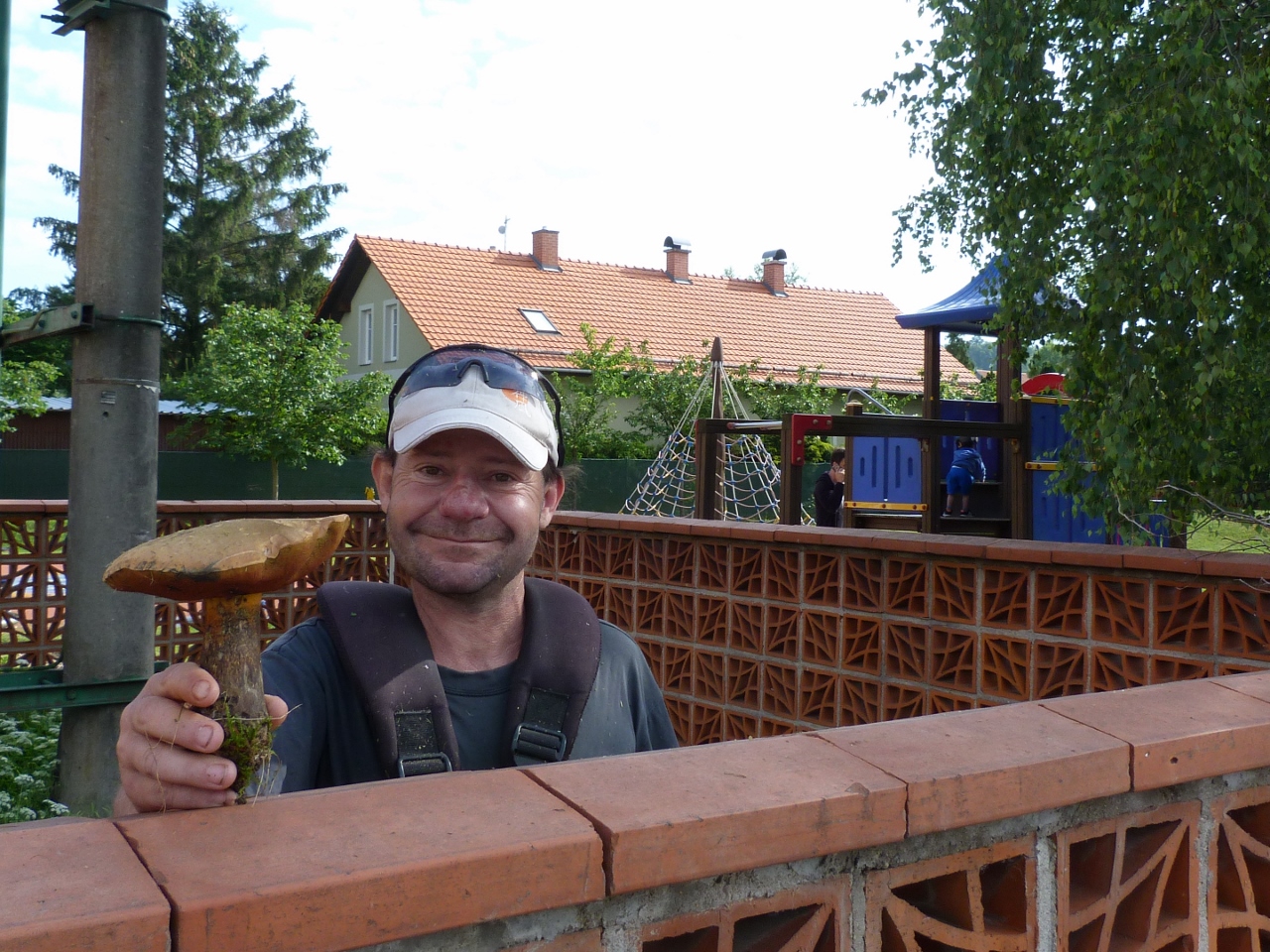 Krásný hřib koloděj našel pracovník obce při sekání vzrostlé trávy uvnitř oplocení trafostanice vedle dětského hřiště u obecního úřadu, cca 8 metrů od kanceláře.