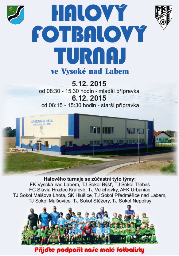Halový fotbalový turnaj dětí se koná v sobotu 5.12. 2015 od 08:30 - 15:30 hodin