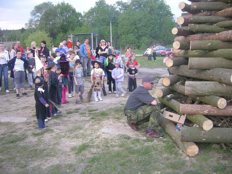 Letošní čarodějnice jsme opět, podobně jako vloni situovali do sportovního areálu. Důvodem je zejména dostatek volného prostoru. Letos to bylo opravdu potřeba, protože počet návštěvníků byl zřejmě rekordní - odhady se pohybují mezi 300 - 400 lidmi! Potěšující byl vysoký počet dětí, které s chutí využívaly dostatek prostoru. K dispozici měly víceúčelové hřiště, travnatý prostor u fotbalového hřiště s obecní trampolínou i celé volné prostranství okolo ohně. Hranice byla letos šestiboká a padly na ni dvě fůry dřeva z obecního lesa. Občerstvení zajistil Sportbar U Kraťase (2 druhy piva, nealko, maso a klobásy), buřta pro děti zdarma věnoval obecní úřad.