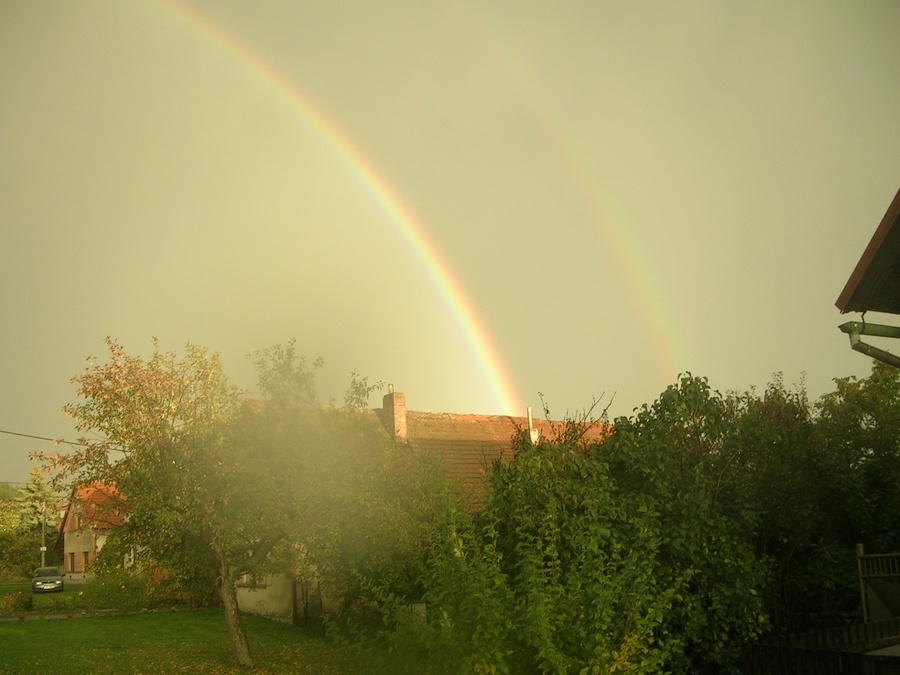 Dne 28. září odpoledne okolo 17 hodiny přestávalo pršet a od západu pod mraky vykouklo sluníčko. Přesně podle fyzikálních zákonů o lomu a rozptylu světla nastala krásná, dokonce dvojitá duha.