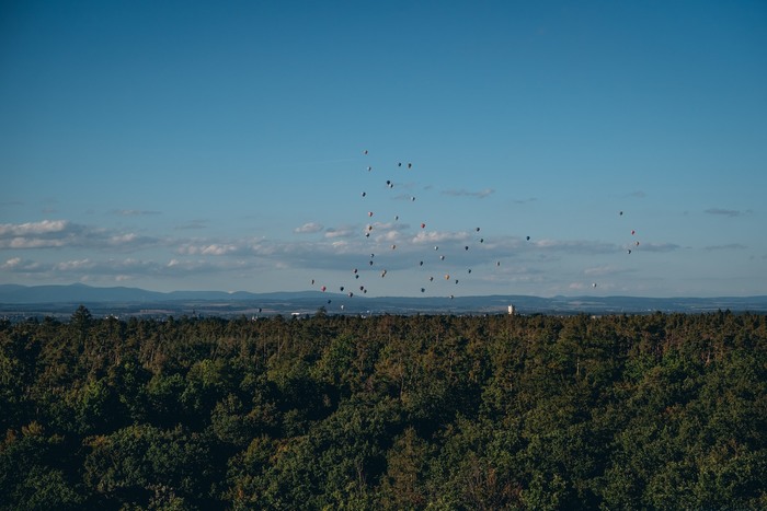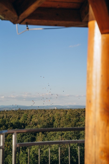 Ve středu 3. září byl avizován přelet cca 50 horkovdušných balónů nad Hradcem Králové. Vzhledem ke směru větru šlo předpokládat, že poletí v blízkosti naší obce, takže skupina sousedů s dětmi se vydala na rozhlednu tuto událost pozorovat. Balóny nakonec letěly poměrně daleko, ale i tak Martina Luňáková nafotila krásné fotografie, o které se s Vámi chceme podělit.