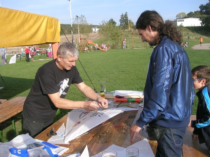 Vzhledem k naprostému bezvětří spočívalo letošní pouštění draků jen na sportovních běžeckých výkonech dětí a tatínků. Draci různých rozměrů, konstrukcí a barev směle vlétali k obloze, aby po chvíli potácení opět padali k zemi.