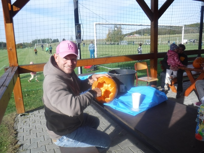Dalším bodem programu bylo dlabání dýní. Pro návštěvníky bylo připraveno 50 dýní a několik hotových jako vzor. Stačil nůž a lžíce na dlabání, plus fantazie, a vznikaly krásné halloweenské dekorace.