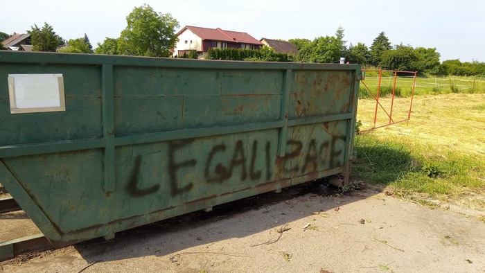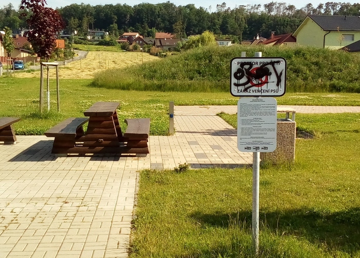 Úvod > Život v obci > Fotogalerie > Zničená cedule postříkaná sprejem a další