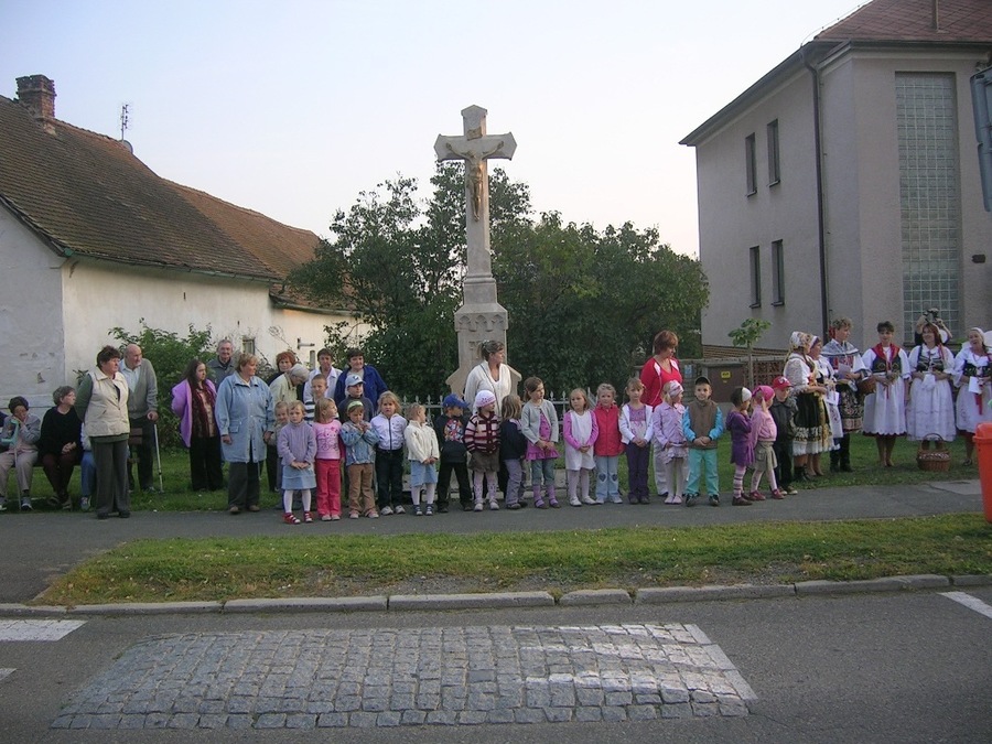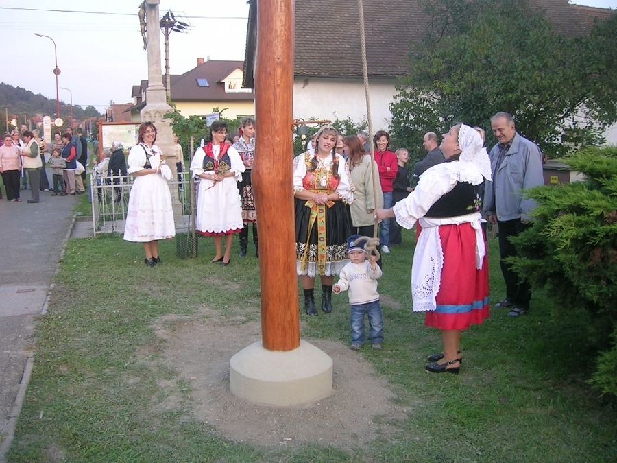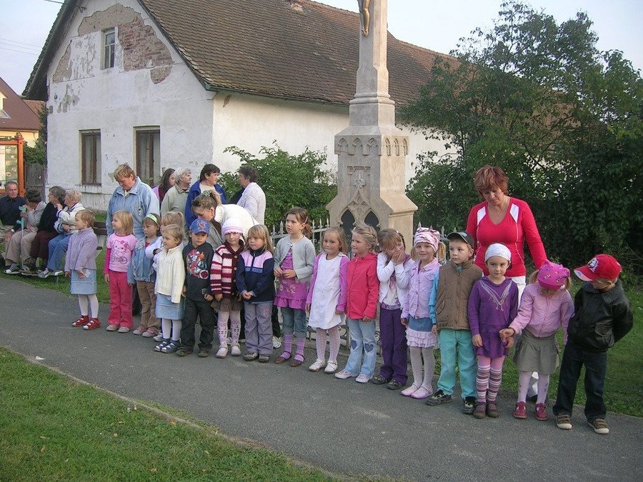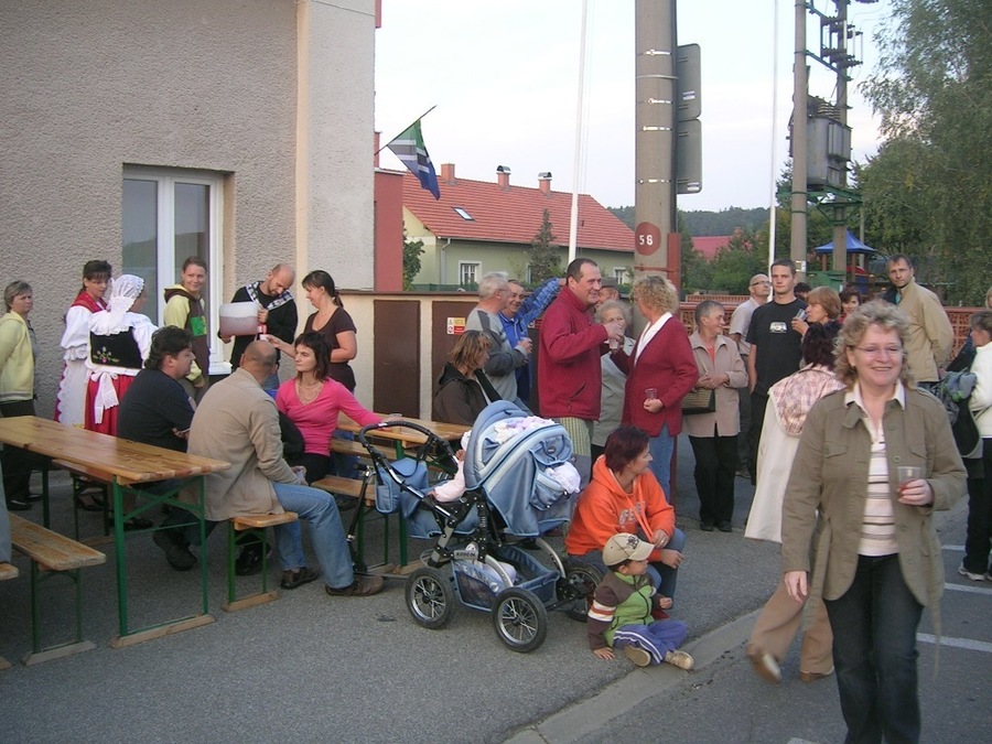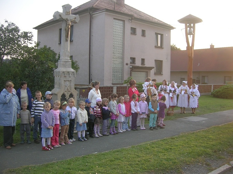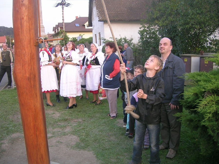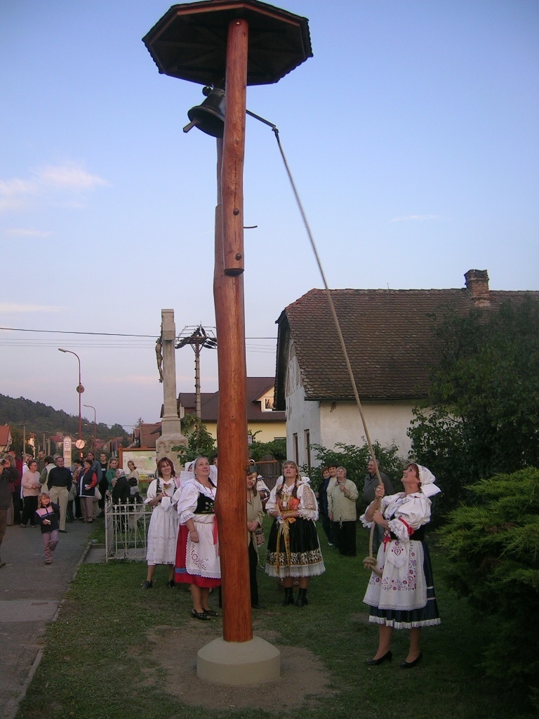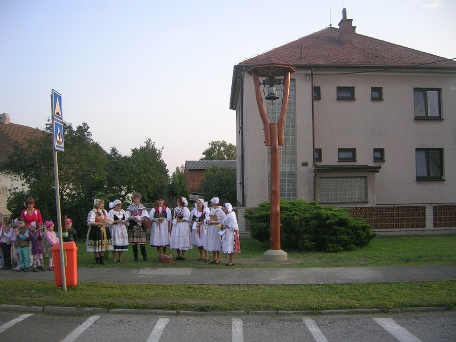 V 18 hodin jsme se sešli u nové zvoničky před mateřskou školou. Návštěvníci mohli slyšet lidové písničky v podání souboru Borověnky, vystoupili i děti z mateřské školy s krátkým pásmem písniček. Pro lepší náladu byl k dispozici burčák a víno z cukrárny "od Milušky".