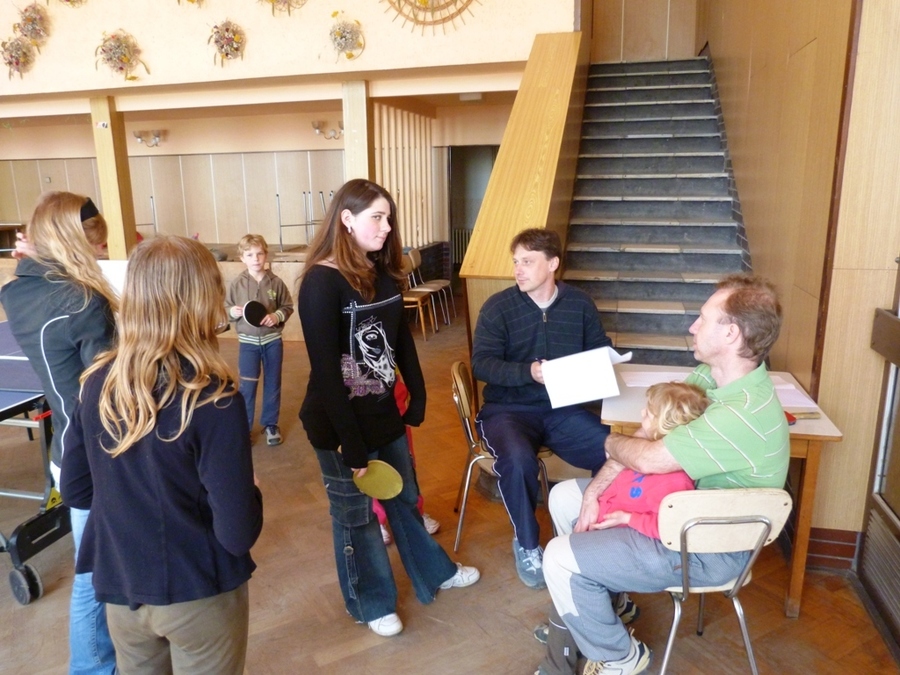 Dospělí se mezitím rozehrávali a v 15 hodin začal turnaj mužů. Hrálo se na dva vítězné sety, k vidění byly vyrovnané výkony i zajímavé výsledky - např. starosta prohrál dva zápasy za sebou v prodlouženém třetím setu 16:18 (pro nepingpongáře - hrálo se do 11 bodů a musí se vyhrát o 2 body), což ho zcela deprimovalo...