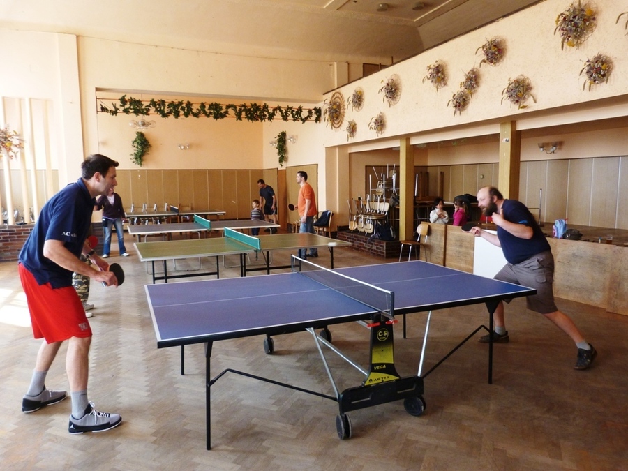Po loňské zkušenosti s vysokým počtem účastníků jme letos nic nenechali náhodě - byly připraveny čtyři stoly, tedy o jeden víc než vloni. Počet hráčů však byl spíše průměrný: šest v kategorii dětí a dvanáct v kategorii muži (z toho jediná žena, která byla výjimečně a jednorázově, s platností pouze pro tento turnaj prohlášena mužem).
