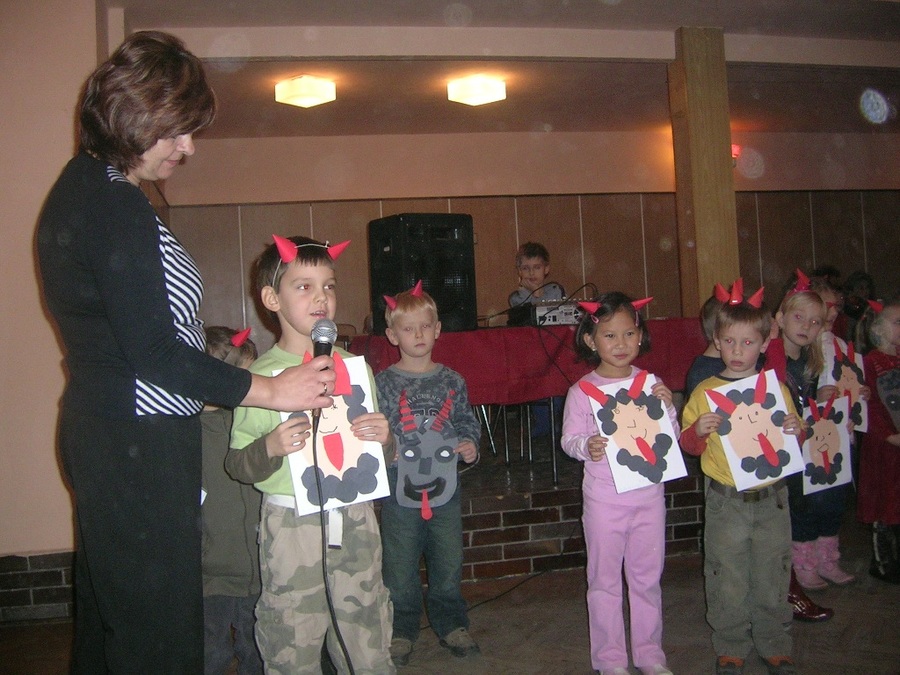 V 17 hodin se děti konečně dočkaly a mohly přivítat důstojného Mikuláše, dvě rozcuchané čertice a krásného anděla. Jako dárek dostaly tradičně adventní kalednář a na závěr byl připravěný ohňostroj na louce u restaurace. JH