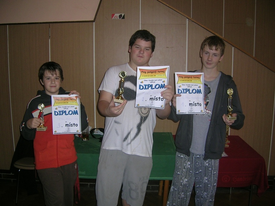 Pingpongový turnaj se stal tradicí, 7. listopadu 2009 jsme se sešli již počtvrté. Účast byla letos nízká, v nejsilnější kategorii "muži" nás nakonec hrálo devět, včetně Zuzky, která byla pro tuto příležitost prohlášena mužem. Kategorie "ženy" letos tedy nebyla, v kategorii "děti" startovali tři chlapci, opět jako každoročně vyhrál Filip Fabián.