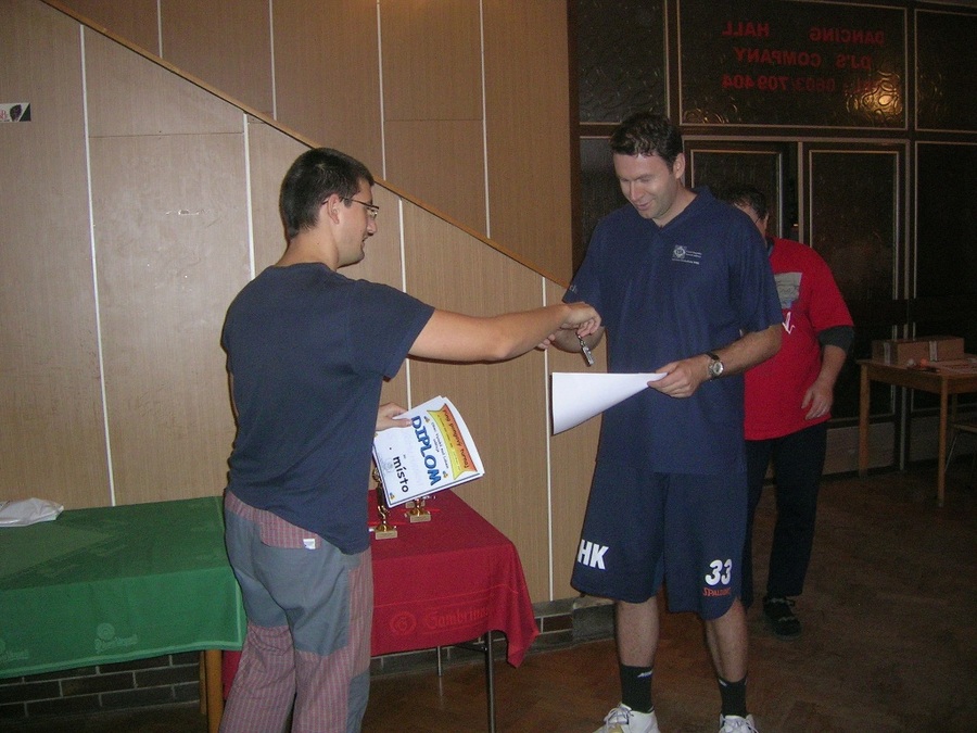 Nízký počet účastníků (způsobený zřejmě m.j. konkurenčním souběhem dvou mistrovských utkání FK Vysoká) dovolil použít systému "každý s každým". Hráli jsme na dva "malé" vítězné sety, na třech stolech.