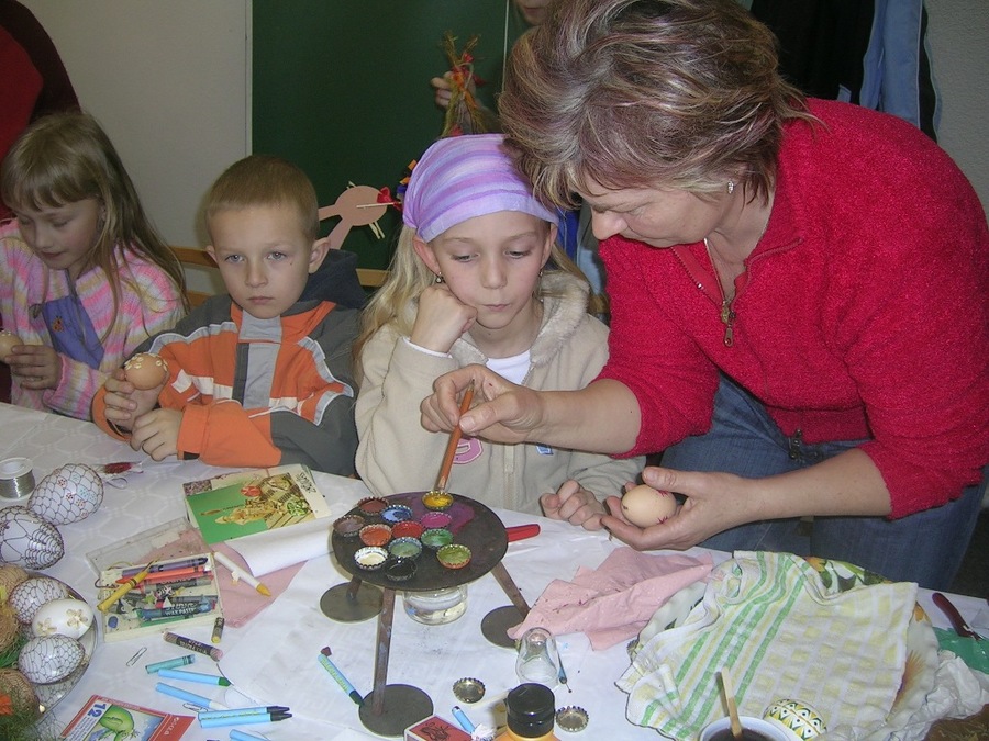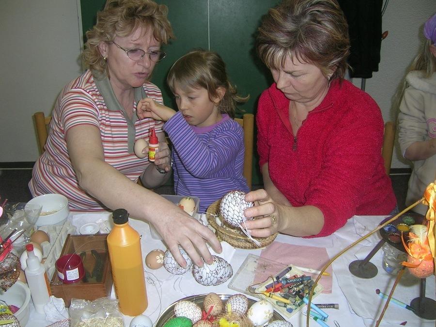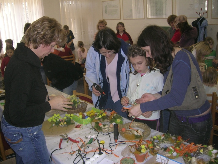 V zasedací místnosti obecního úřadu bylo chvílemi těsno. Děti s rodiči obcházeli jednotlivá stanoviště a zkoušeli vlastnoručně ozdobit velikonoční vajíčko různými způsoby, uplést ozdobný košíček, aranžmá z čerstvých vrbových proutků i jiné výrobky s velikonoční či jarní tématikou. Nechybělo ani zdobení perníčků barevnou cukrovou polevou. Zajímavé bylo věkové složení návštěvníků, kdy nejmladšímu bylo několik měsíců a nejstaršímu hodně přes sedmdesát. A o to právě organizátorům šlo - vytvořit příležitost, při které se mohou občané obce setkat a společně prožít pěkné odpoledne.