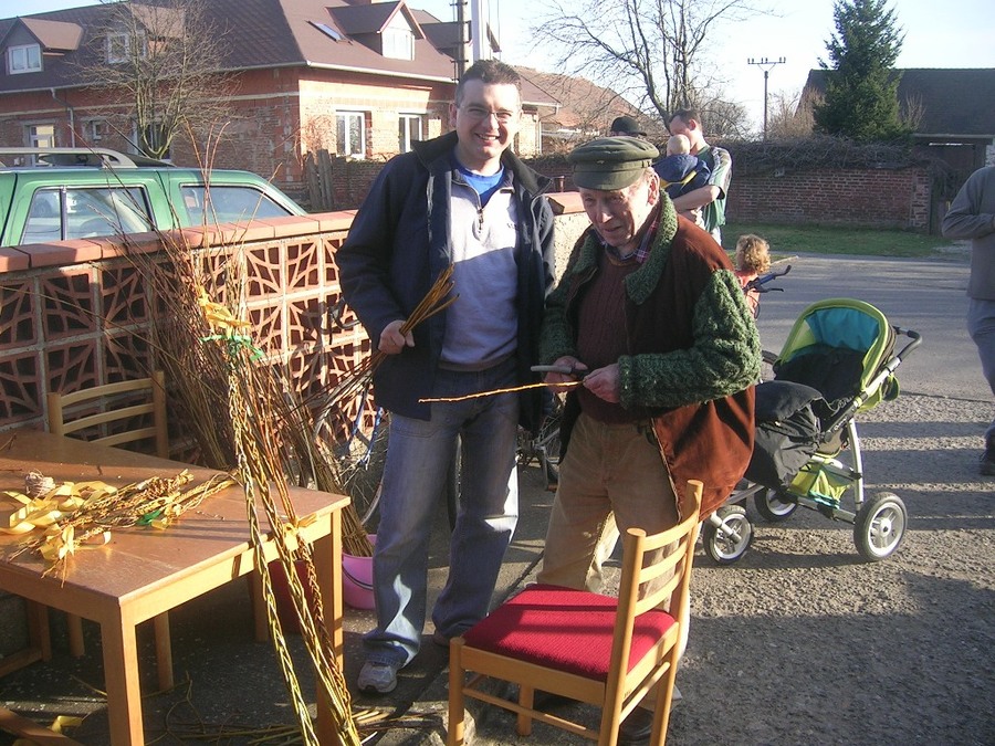 Okolo 15. hodiny se k budově obecního úřadu začali scházet první návštěvníci.Venku si mohli prohlédnout při práci hned dva mistry kováře i ukázky jejich prací a děti dostaly čokoládové vajíčko. Pro rodiče byla připravena na zahřátí horká medovina, pro nezletilé a řidiče točená kofola i drobné sladkosti. Naproti kovářské výhni stály ve svazečkách připraveny čerstvé proutky na pomlázku, ze kterých si návštěvníci s menší či větší pomocí zkoušeli uplést pomlázku. Některým se to dokonce povedlo a kluci hned zkoušeli její funkčnost na přítomných děvčatech.