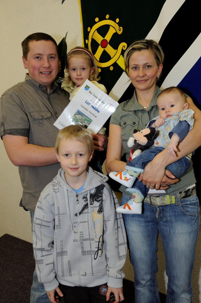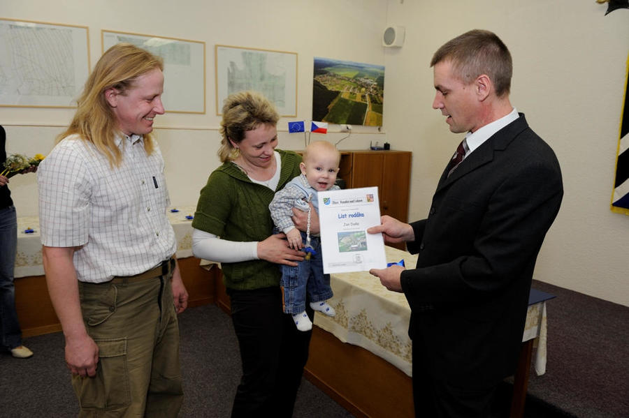 V sobotu 6. března slavnostně přivítal starosta obce v zasedací místnosti obecního úřadu 16 nových občánků narozených v roce 2009. Tento počet je bezkonkurenčně nejvyšším číslem v novodobé historii obce a dobře dokumentuje trend nárůstu obyvatel. Každý nový občánek dostal upomínkový list rodáka a zlatý přívěšek, maminky dostaly květinu a pak se oba rodiče zapsali do pamětní knihy. Celou akci fotografoval profesionální fotograf, CD s fotografiemi dostali rodiče na památku. Pozornost vzbudila stará pamětní kniha z podobných akcí, kterou si přítomní rodiče a prarodiče s chutí prohlédli. JH