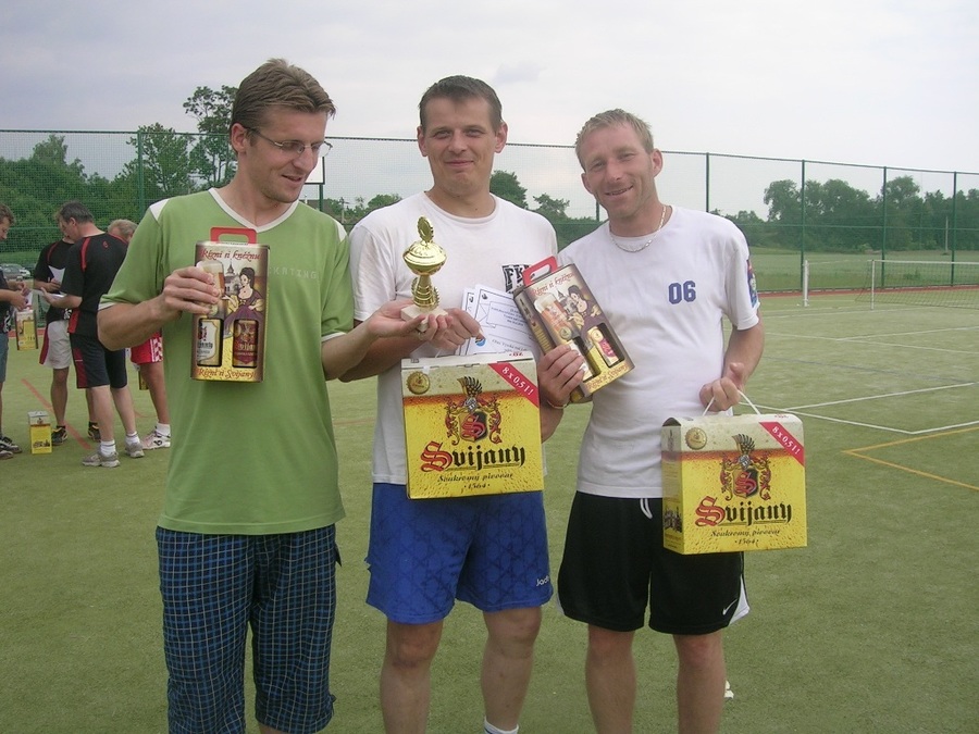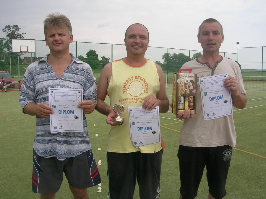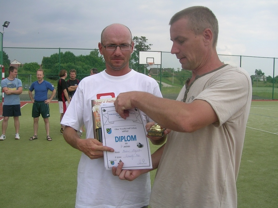 Nohejbalový turnaj Vysočáků začal v 10 hodin. Zúčastnilo se 7 týmů, z toho jeden čestný host - sousedé z Nového Hradce Králové. Vítězem se stal vysocký tým STARS (vloni byl třetí), Novohradečáci skončili po velmi pěkném výkonu na 3. místě. Každé družstvo bylo odměněno pohárem nebo plaketou a tekutou cenou od pivovaru Svijany.