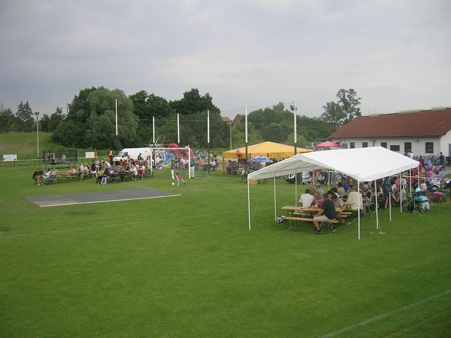 Doprovodný program uvítaly zejména děti: houpačky, trampolína, skákací hrad i celý volný prostor fotbalového hřiště.