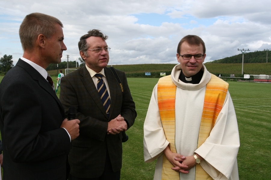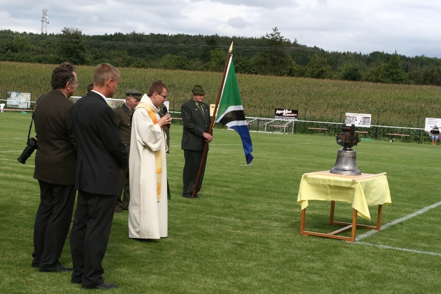 SLAVNOSTNÍ ŽEHNÁNÍ NOVÉHO ZVONU bylo hlavním bodem Vysockého posvícení v sobotu 28.8.2010. Zvon o váze 43 kg odlila věhlasná zvonařská dílna rodiny Dytrychových v Brodku u Přerova, je na něm heraldický znak obce a letopočet 2010. Zvon je zasvěcen patronu našeho farního kostela, sv. Janu Křtiteli a jeho požehnání provedl Mons. ThLic. Tomáš Holub, ThD. Pozvání přijal i další milý host - Ing. David Kafka, za duchovní správu farnosti P. Prokop Tobek.
